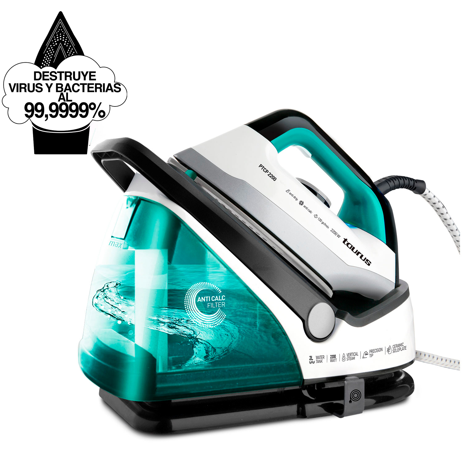 ¿Cansado de pasar horas planchando sin obtener resultados? El TAURUS CENTRO PLANCHADO PTC2200 transforma la tarea de planchar en un proceso rápido y sin esfuerzo. Con su potente vapor de 120g y 5 bares de presión, tus prendas quedarán impecables en un abrir y cerrar de ojos.